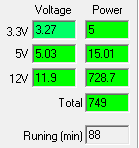 С другой стороны, иногда нужно объективно оценить экономичность компьютерного блока питания. Под экономичностью мы подразумеваем потерю мощности при преобразовании электроэнергии и ее передаче к конечным потребителям. И для оценки этого КПД не нужен, так как можно использовать не отношение двух величин, а абсолютные значения: рассеиваемую мощность (разницу между значениями на входе и выходе блока питания), а также потребление энергии источником питания за определенное время (день, месяц, год и т. д.) при работе с постоянной нагрузкой (мощностью). Это позволяет легко увидеть реальную разницу в потреблении электроэнергии конкретными моделями БП и при необходимости рассчитать экономическую выгоду от использования более дорогих источников питания.