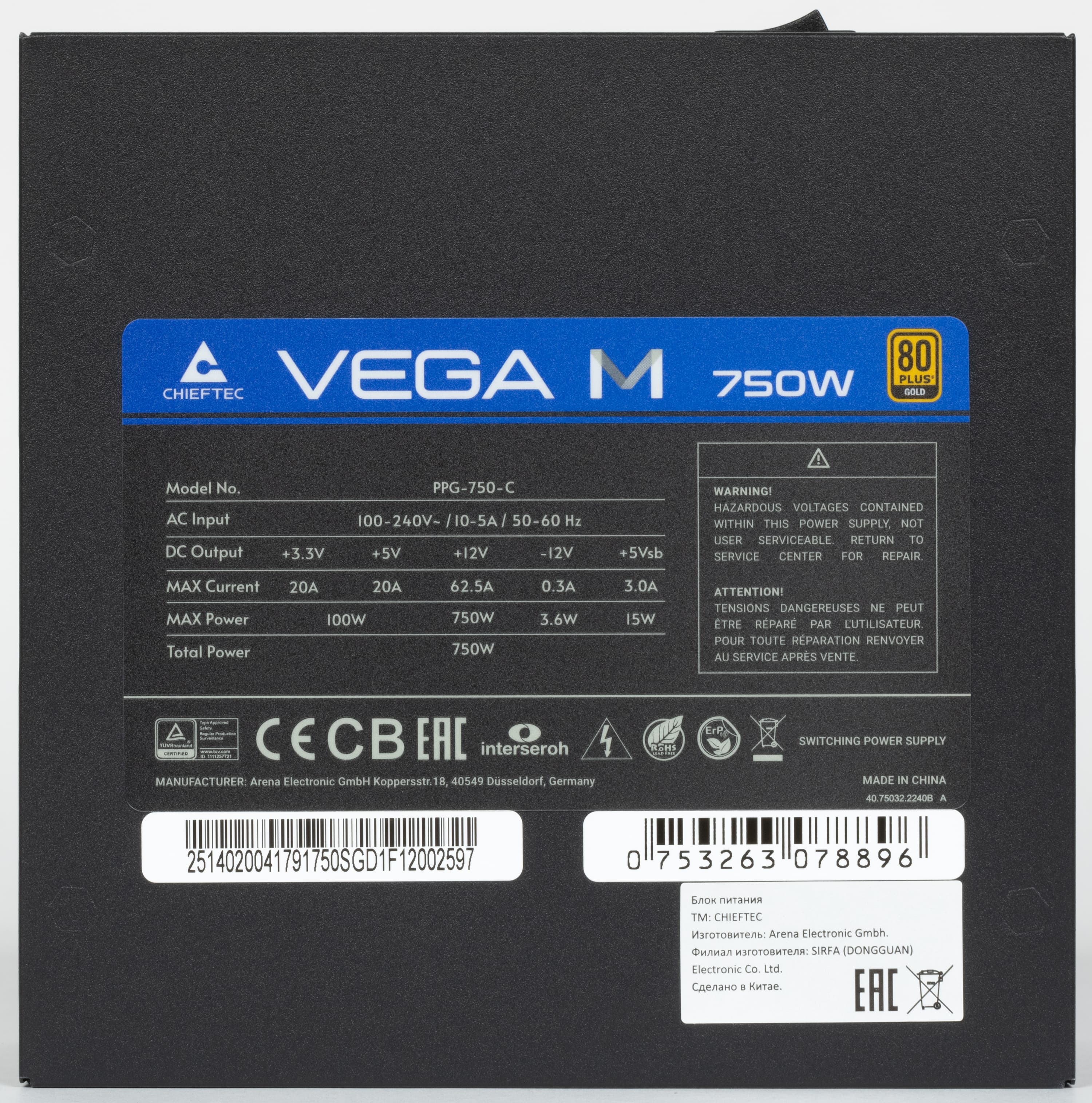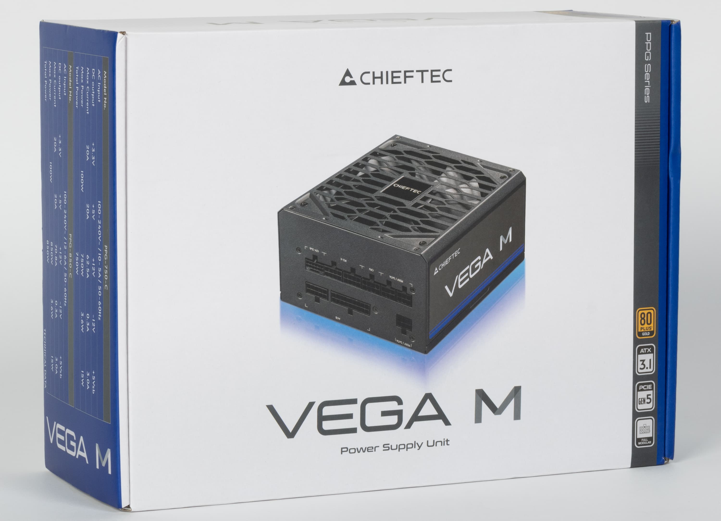В этот раз мы познакомимся с блоком питания Chieftec Vega M 750W (PPG-750-C) мощностью 750 Вт, который имеет сертификат 80Plus Gold. Блок питания соответствует стандарту ATX 3.1 и позволяет питать очень мощные современные видеокарты через 16-контактный разъем PCIe 5.1 (12V-2×6).