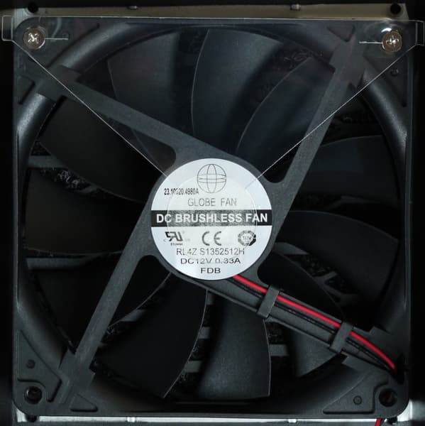 В блоке питания установлен вентилятор Globe Fan RL4Z S1352512H типоразмера 135 мм, подключение двухпроводное, через разъем. Вентилятор основан на гидродинамическом подшипнике, что подразумевает долгий срок его службы.