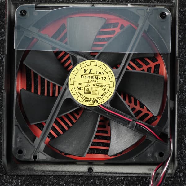 В блоке питания установлен вентилятор D14BM-12 типоразмера 140 мм производства Yate Loon Electronics. Вентилятор основан на подшипнике качения и имеет скорость вращения 1400 оборотов в минуту, согласно данным производителя. Подключение двухпроводное через разъем.