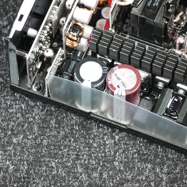 Конденсаторы в блоке питания имеют преимущественно японское происхождение. В основной массе это продукция под торговыми марками Nichicon и Nippon Chemi-Con. Установлено и большое количество полимерных конденсаторов.