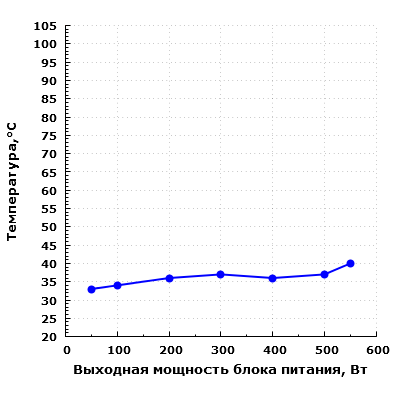 Также стоит учитывать, что в случае работы с остановленным вентилятором температура компонентов внутри БП сильно зависит от окружающей температуры воздуха, и если та установится на уровне 40-45 °C, это приведет к более раннему включению вентилятора.