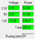 При типичном распределении мощности по каналам отклонения от номинала не превышают 2% по каналу +3.3VDC, 1% по каналу +5VDC и 1% по каналу +12VDC.