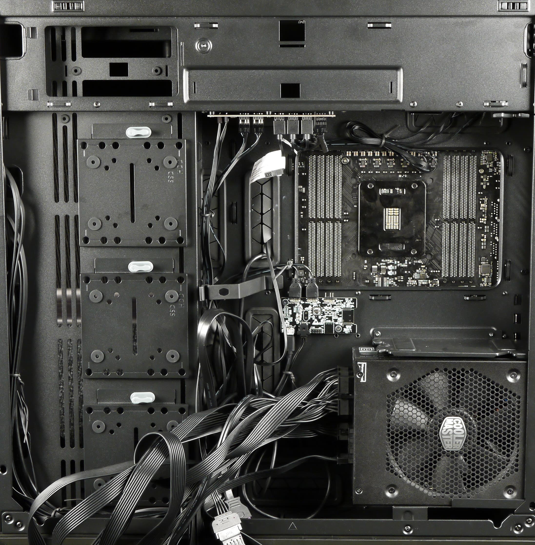 В целом система в данном корпусе собирается довольно удобно и без особых акробатических этюдов, но сборка требует времени, которое пропорционально количеству устанавливаемого оборудования. При использовании типовых компонентов всё можно осуществить очень быстро, а если устанавливать, к примеру, СЖО на дискретных компонентах, то времени и усилий по понятным причинам потребуется заметно больше.