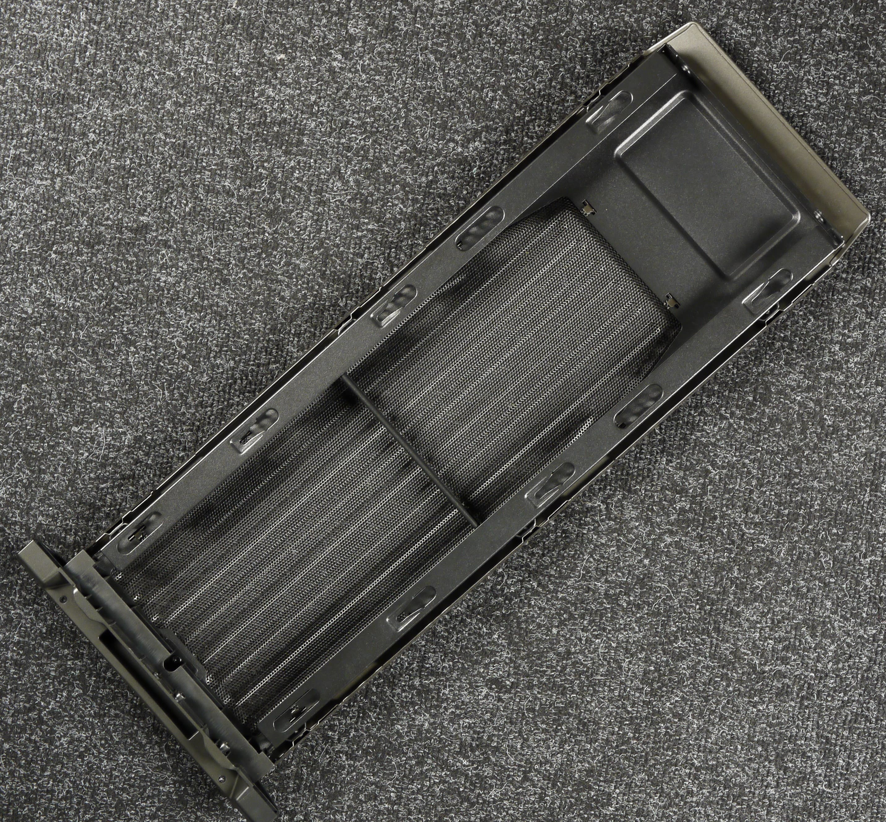 Масса корпуса составляет 24,7 кг, что с учетом его габаритов является вполне приличным показателем — корпус уж точно сделан не из фольги. Толщина стали — чуть более 1 мм (вместе с покрытием).