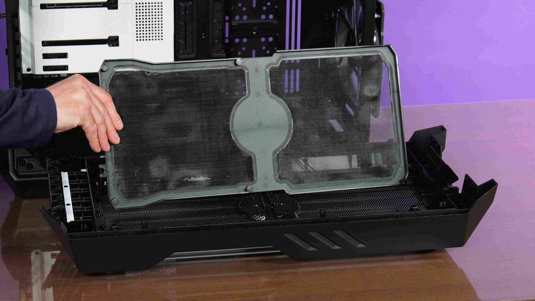 Вентиляционные отверстия, расположенные на верхней панели, прикрыты несъемной крупноячеистой стальной решеткой, назвать которую пылевым фильтром можно лишь с очень большой натяжкой.