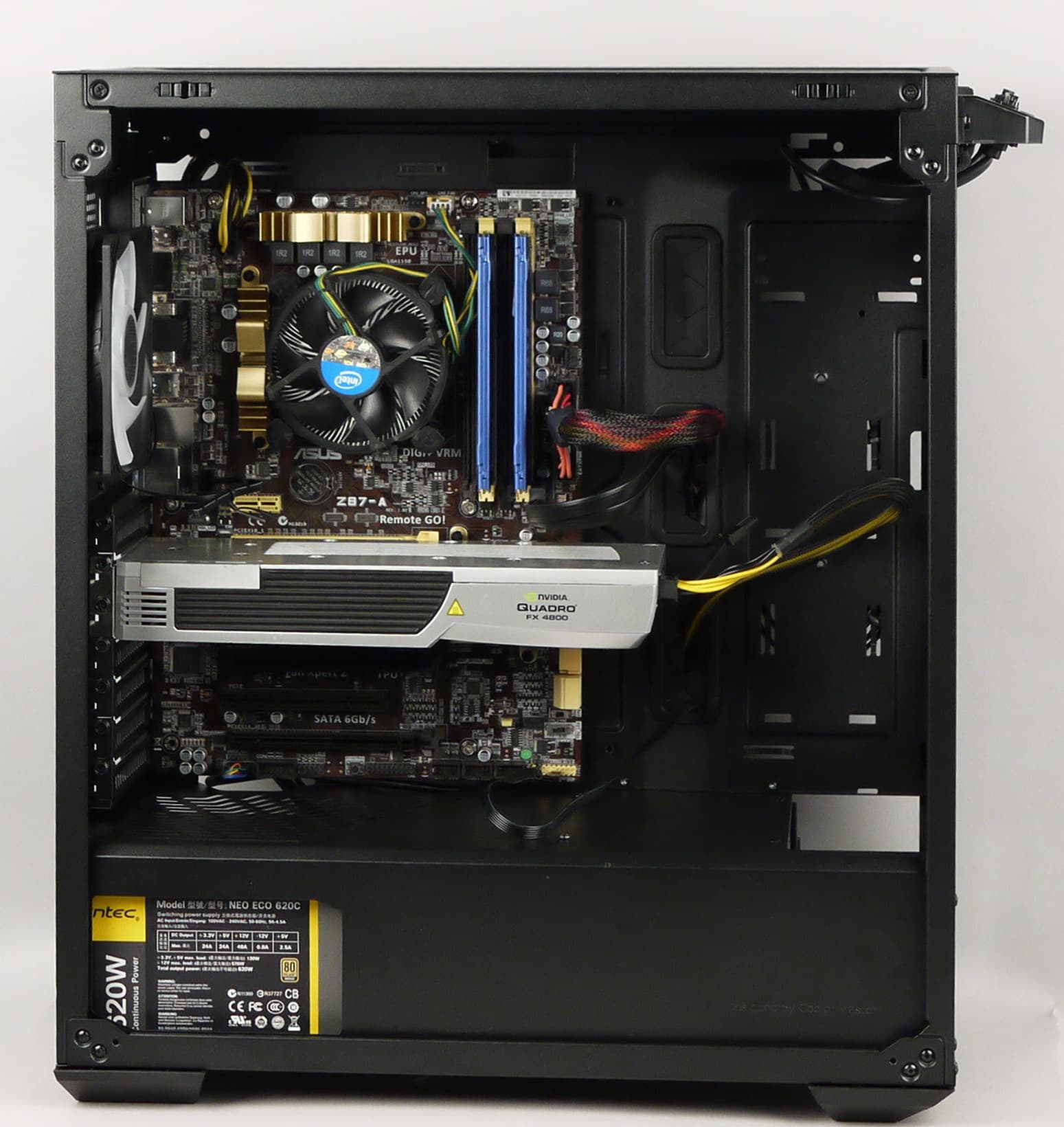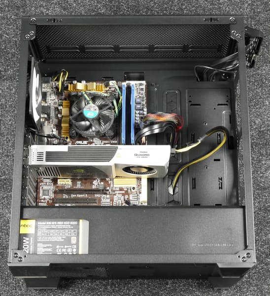 Порядок сборки ПК в данном корпусе особого значения не имеет, так как компоненты разнесены и не мешают друг другу, но лучше начать с установки блока питания и прокладки проводов.