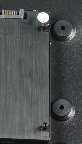 Конструкция их крепления достаточно оригинальная: в накопитель вкручиваются винты с цилиндрической головкой, которые вставляются в резиновые втулки, вдетые в монтажные отверстия, то есть фиксация осуществляется только за счет силы трения.