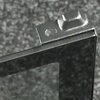 Левая боковая стенка выполнена из закаленного стекла со стальными накладками. Система крепления — гильотинного типа: стенка вставляется сверху вниз, где есть зацеп, благодаря которому она и фиксируется.