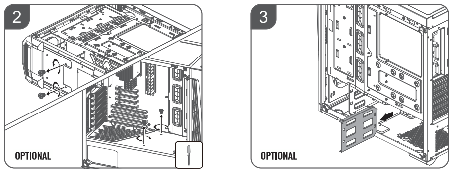 Для упрощения установки блока питания можно демонтировать одну из стенок корзины, этот вариант отражен в инструкции.