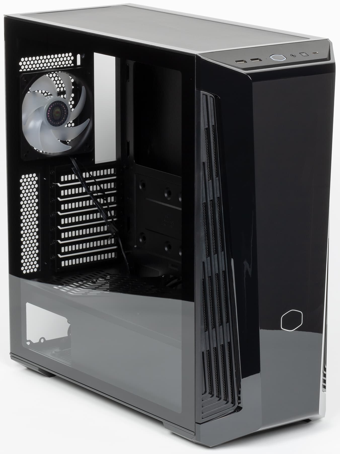 В корпусе предустановлен один вентилятор SickleFlow PWM ARGB (1800 об/мин) типоразмера 120 мм, который расположен сзади.