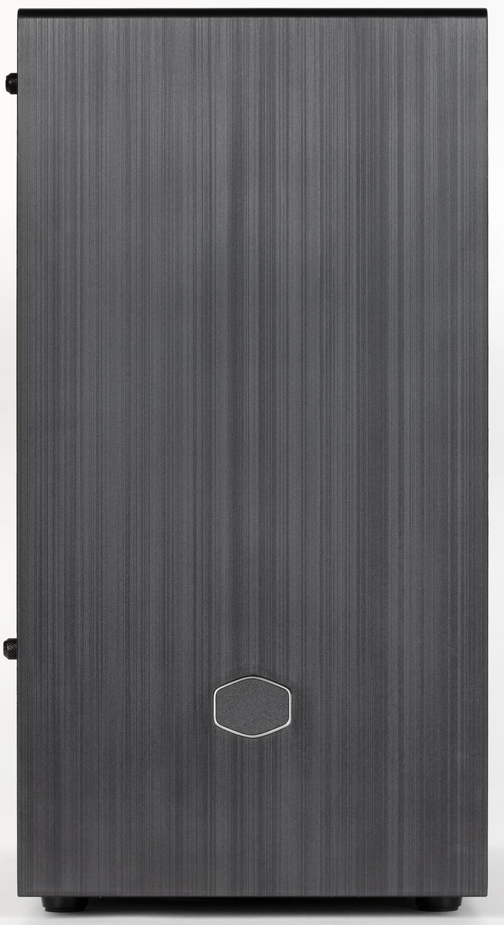 Левая стенка корпуса имеет оригинальную конструкцию: она состоит из двух частей. Нижняя часть — стационарная стальная, а в верхней части установлена съемная панель, выполненная в случае нашей модификации из закаленного стекла. Фиксируется панель при помощи четырех винтов с накатной головкой, винты выполнены невыпадающими. Система крепления — накладного типа: винты вставлены через отверстия в панели.