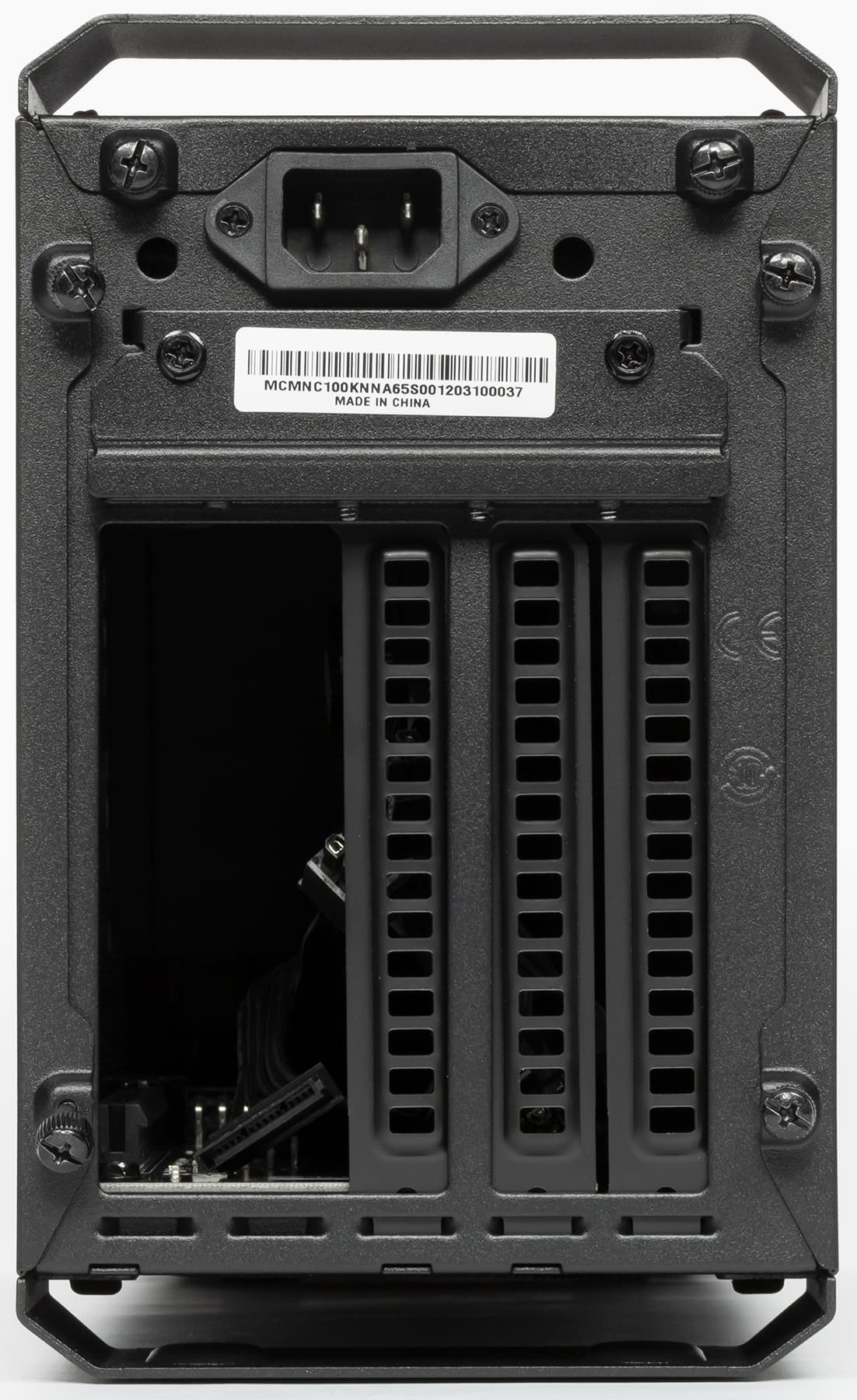 Однако у всего есть как плюсы, так и минусы. В частности, стандартный корпус имел объем в 5 литров, а NC100 уже тянет на 7,9 л, что приближается к некоторым системам на базе Mini-ITX. Но назвать громоздким корпус размерами 370×128×214 мм язык все равно не поворачивается — просто он немного больше самых миниатюрных вариантов. Внешность MasterCase NC100 перекликается с «полноразмерными» корпусами компании — чего стоят только стилизованные «ручки» для переноски. Но размеры не позволят спутать систему в таком корпусе с «полноразмерным» компьютером.