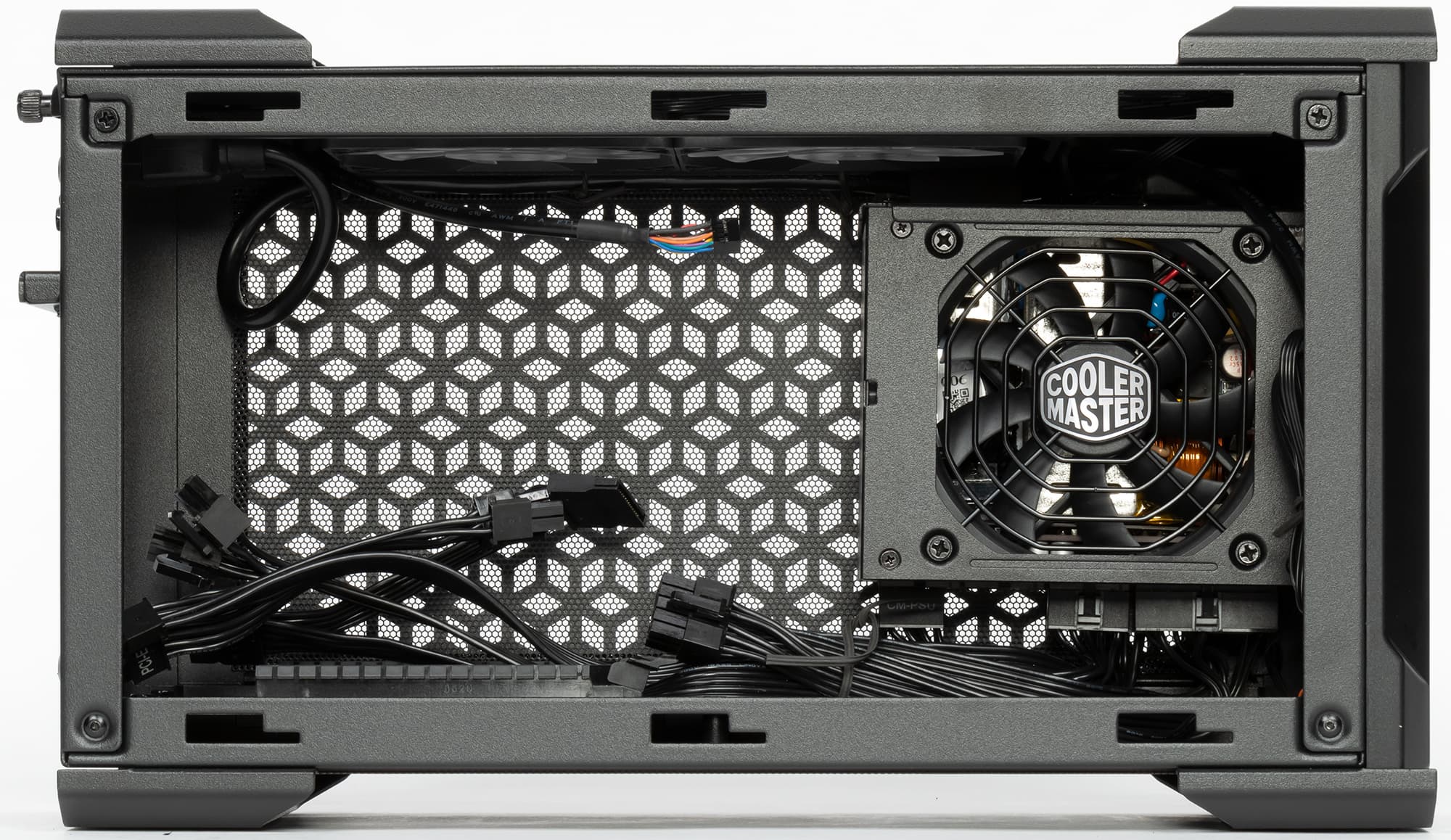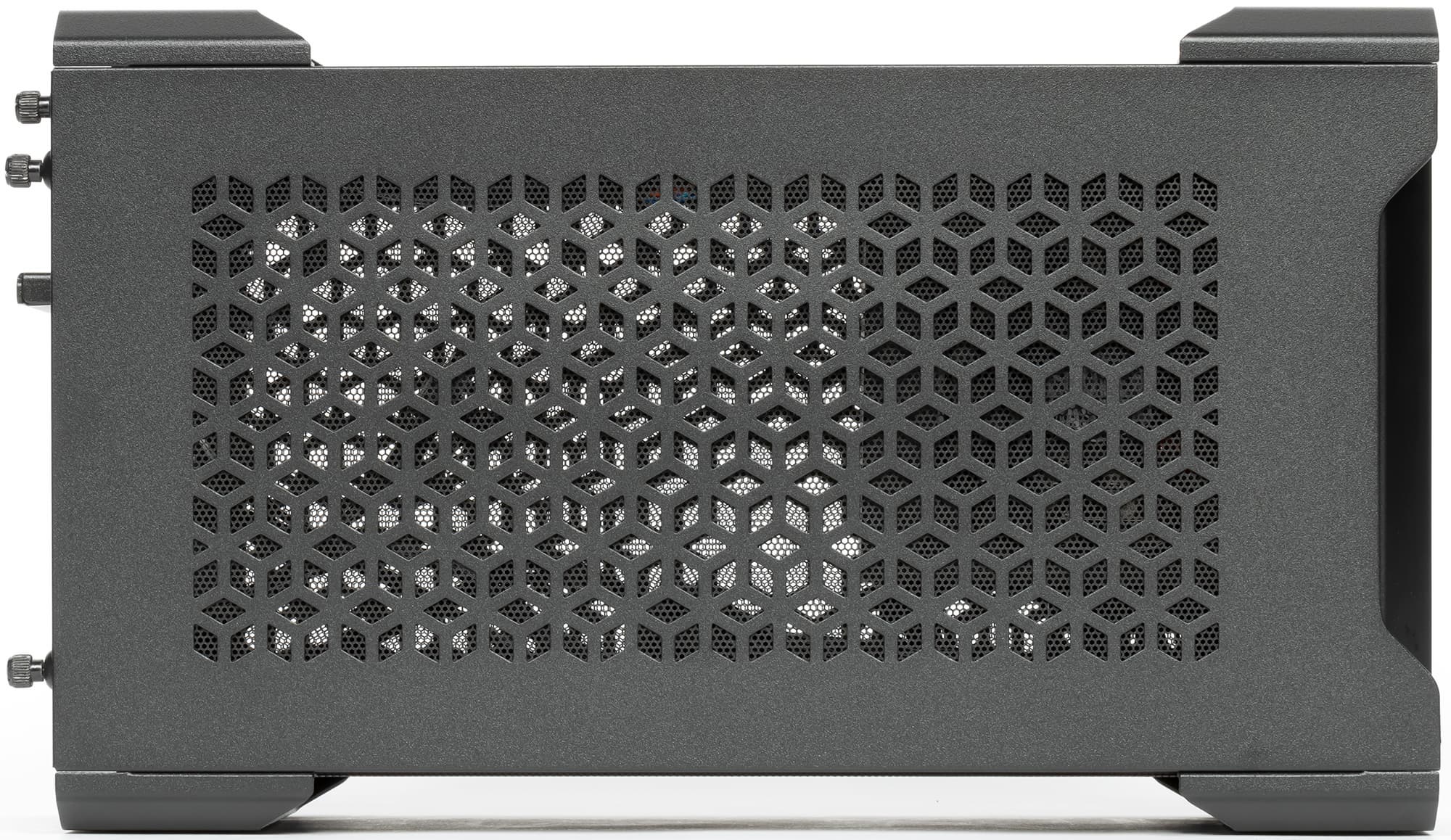 Верх и низ имеют крупную перфорацию, но снабжены легкосъемными, благодаря магнитному креплению, пылевыми фильтрами. Бока тоже не обходятся без мелкой сетки, но снять ее можно только вместе с панелями. Чего на практике, в общем-то, достаточно.