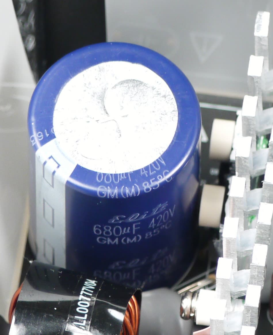 Высоковольтные элементы размещены на одном радиаторе средних размеров, входная диодная сборка обеспечена отдельным теплоотводом.