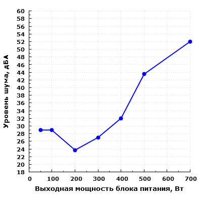 При дальнейшем увеличении выходной мощности уровень шума блока питания заметно повышается.