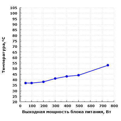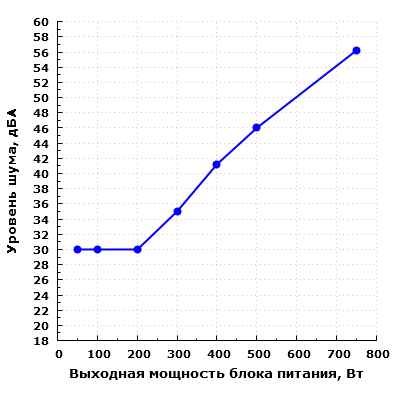 При дальнейшем увеличении выходной мощности уровень шума блока питания заметно повышается.