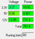 При типичном распределении мощности по каналам отклонения от номинала не превышают 2% по каналу +3.3VDC, 3% по каналу +5VDC и 2% по каналу +12VDC.