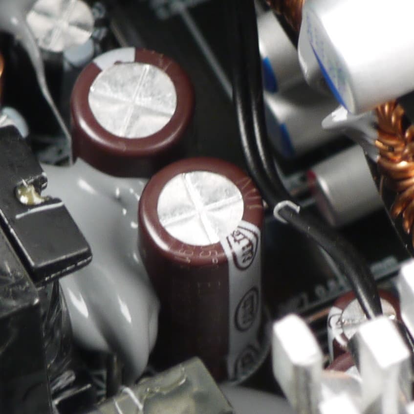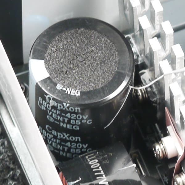 Конденсаторы в блоке питания в основной массе представлены продукцией под торговыми марками Elite и Capxon. Установлено большое количество полимерных конденсаторов.