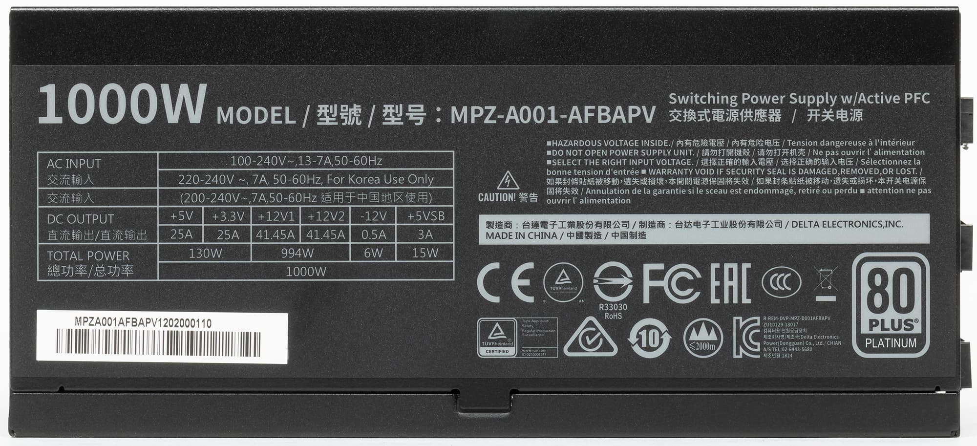 Блок питания изготовлен на производственных мощностях компании Delta Electronics, чего никто не скрывает. Наоборот, информация об этом размещена на этикетке изделия.
