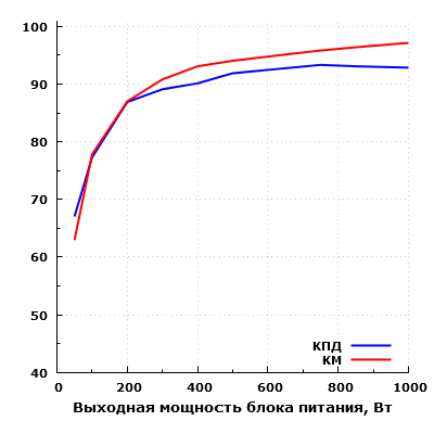 Представление эффективности компьютерного блока питания в виде значения КПД (коэффициента полезного действия) имеет свои традиции. Прежде всего, КПД — это коэффициент, определяемый соотношением мощностей на выходе и на входе блока питания, то есть КПД показывает эффективность преобразования электрической энергии. Обычному же пользователю данный параметр почти ничего не скажет, за исключением того, что более высокий КПД вроде как говорит о большей экономичности БП и более высоком его качестве. Зато КПД стал отличным маркетинговым якорем, особенно в комбинацией с сертификатом 80Plus. Однако с практической точки зрения КПД не оказывает заметного влияния на функционирование системного блока: он не увеличивает производительность, не снижает шум или температуру внутри системного блока. Это просто технический параметр, уровень которого в основном определяется развитием промышленности в текущий момент времени и себестоимостью продукта. Для пользователя же максимизация КПД выливается в увеличение розничной цены.