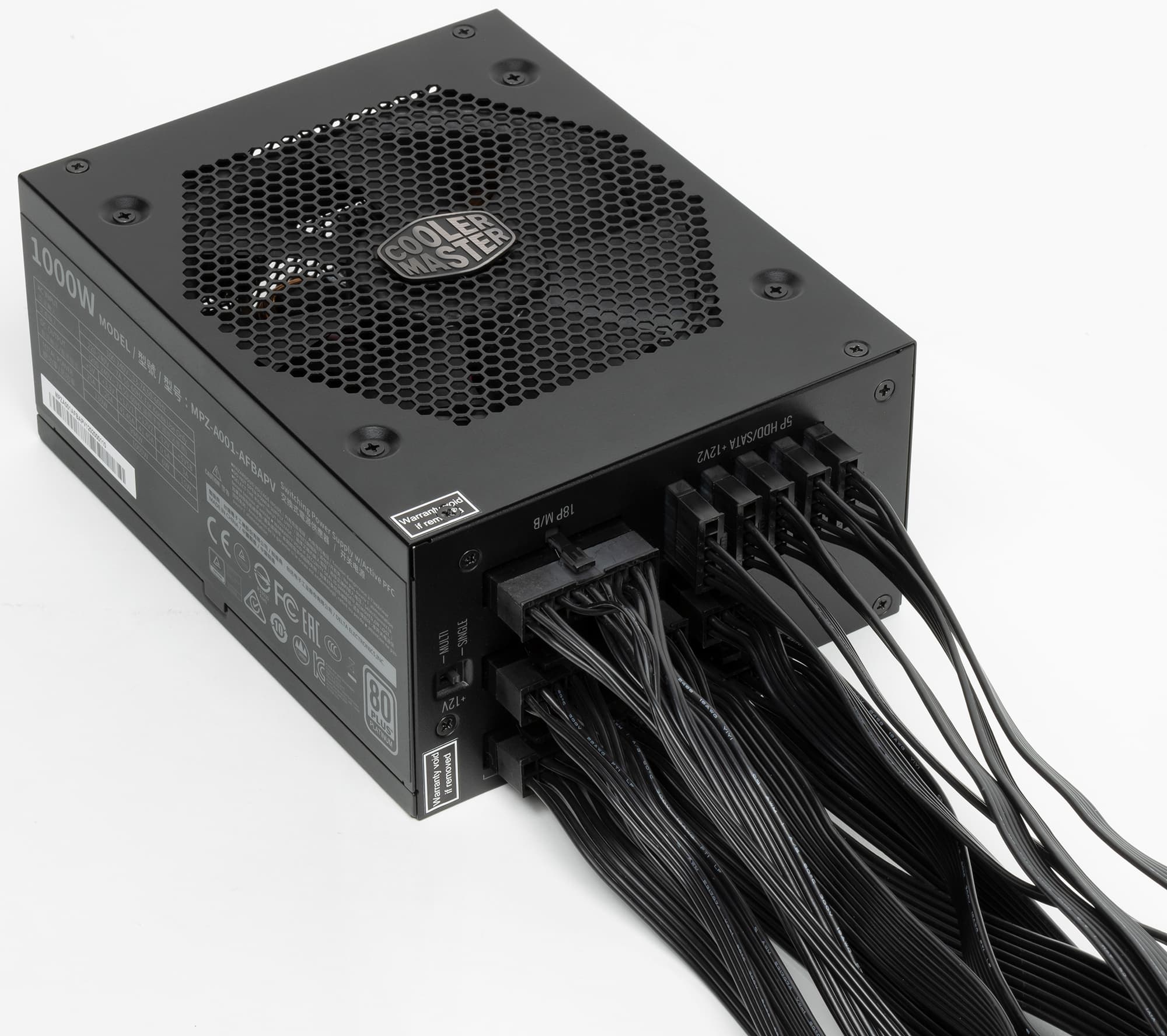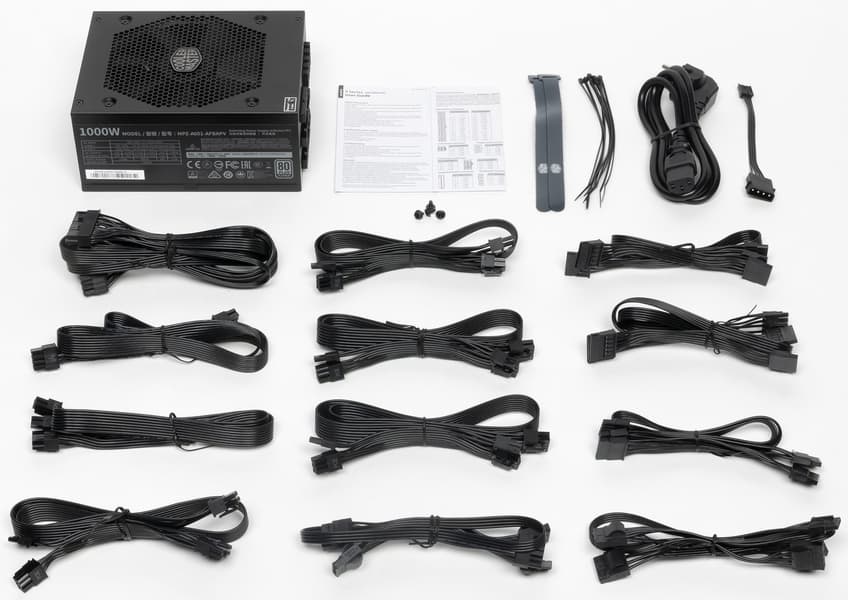 В этом обзоре мы познакомимся с представителем одной из старших серий блоков питания Cooler Master — V1000 Platinum. Всего в ней сейчас представлены 4 модели мощностью 850, 1000, 1200 и 1300 Вт. Понятно, что блоки питания мощностью 1000 Вт приобретают, как правило, для специфических задач — для майнинговых ферм, для специализированных тестовых систем, для высоконагруженных систем для рендеринга, расчетов и пр. Максимальная рабочая температура воздуха для нашего блока питания составляет 50 °C.