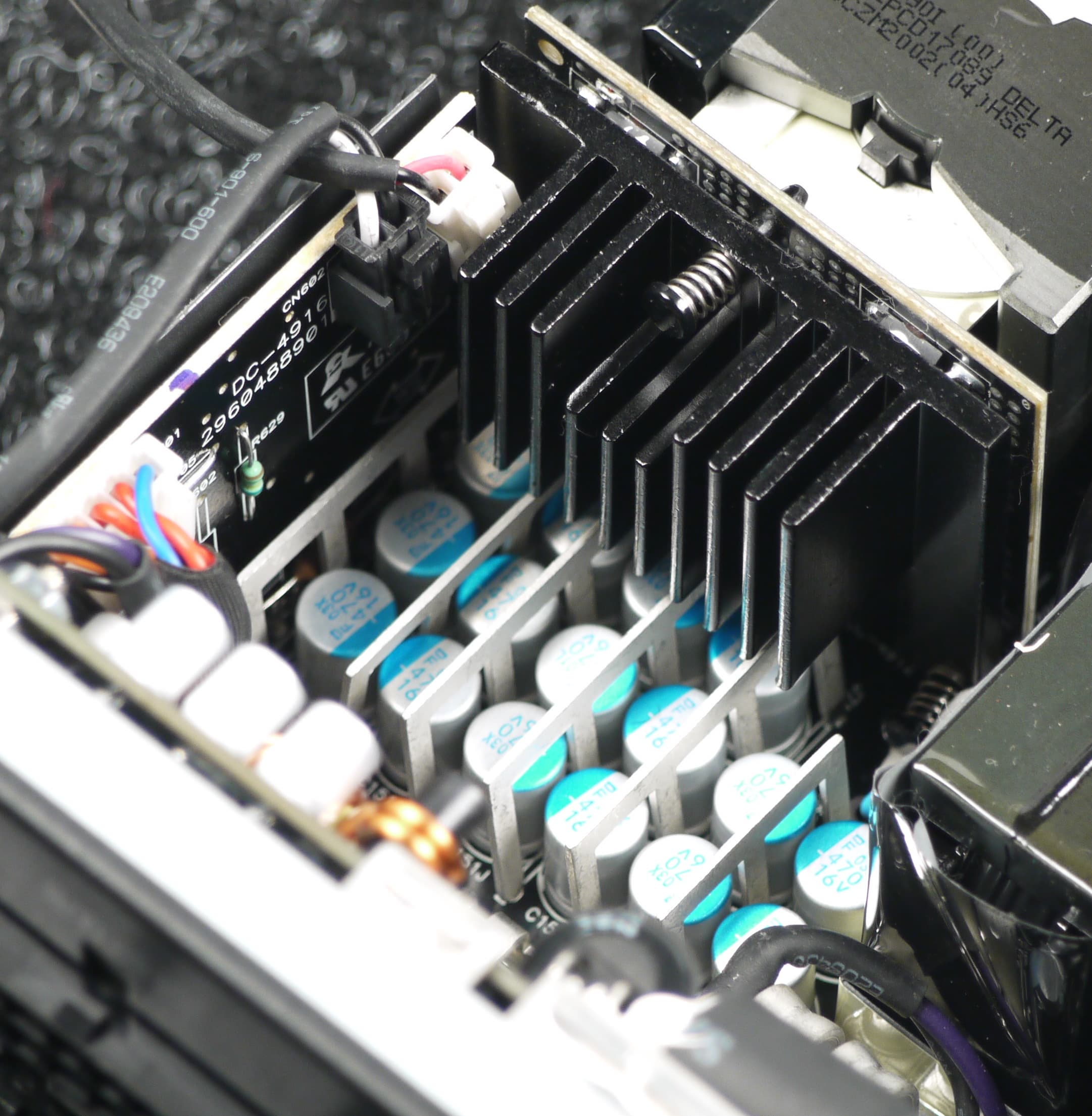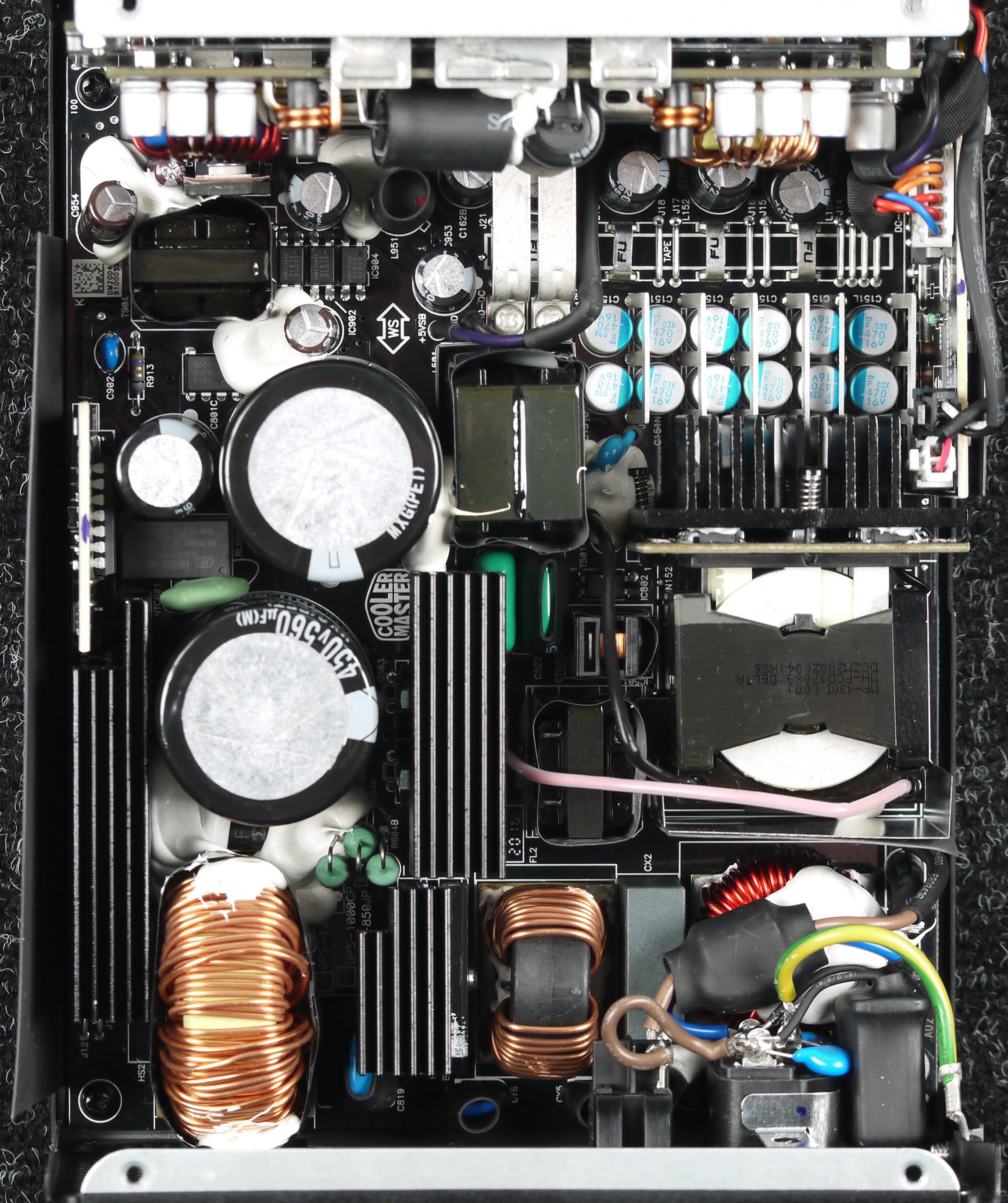 Высоковольтные полупроводниковые элементы расположены на двух радиаторах, также отдельный теплоотвод имеет сдвоенная входная диодная сборка. Элементы синхронного выпрямителя размещены на дочерней печатной плате и оснащены собственным радиатором.