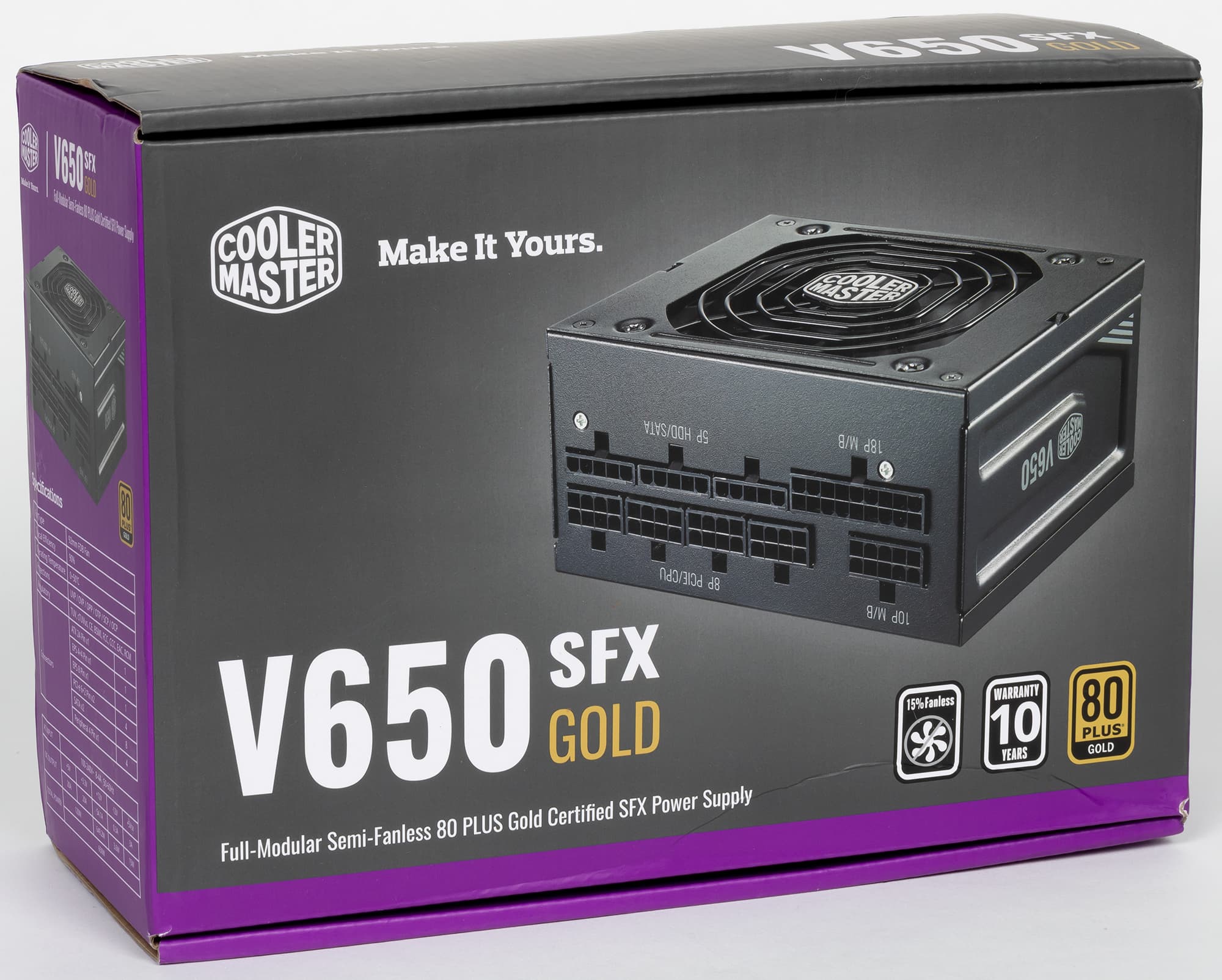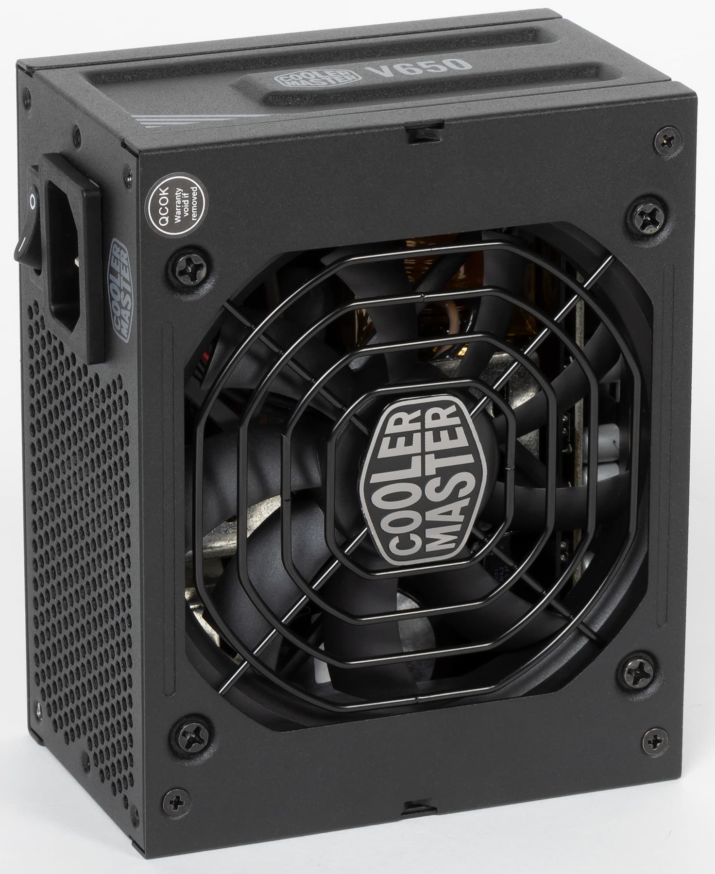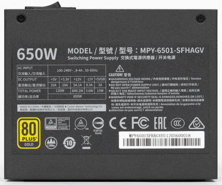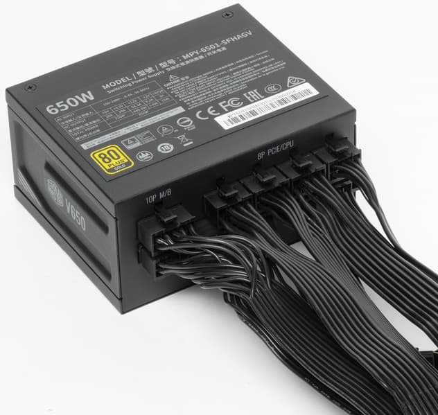 Все БП данной серии характеризуются использованием японских конденсаторов, а также наличием сертификата 80Plus Gold. Мы протестируем модель мощностью 650 Вт: Cooler Master V650 SFX Gold.