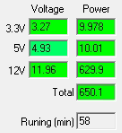 При типичном распределении мощности по каналам отклонения от номинала не превышают 1% по каналу +3.3VDC, 2% по каналу +5VDC и 2% по каналу +12VDC.