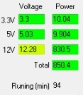 При типичном распределении мощности по каналам отклонения от номинала не превышают 1% по каналу +3.3VDC, 1% по каналу +5VDC и 4% по каналу +12VDC.