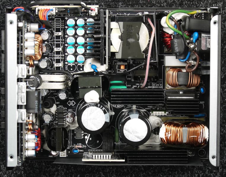 Высоковольтные полупроводниковые элементы расположены на двух радиаторах, также отдельный теплоотвод имеет сдвоенная входная диодная сборка. Элементы синхронного выпрямителя размещены на дочерней печатной плате и оснащены собственным радиатором.