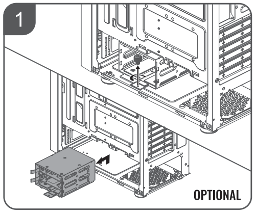 Компоновочные решения данной модели определяются современными тенденциями корпусостроения. В данном случае разработчики отказались от отсека для устройств формата 5,25″, а привычный отсек для устройств 3,5″ расположен около передней стенки шасси, но присутствует он в усеченном виде — всего на два диска. При желании его можно снять, открутив винт.