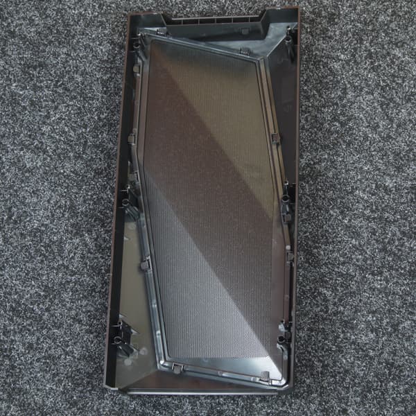 Для ее очистки придется снимать переднюю панель целиком и промывать ее, или же можно воспользоваться пылесосом. Никаких электрических соединений к передней панели не подходит, так что демонтировать ее удобно. Сквозного отверстия на нижнем торце передней панели нет, что стоит оценить положительно, так как в этом случае весь поток воздуха поступает внутрь только через переднюю решетку.