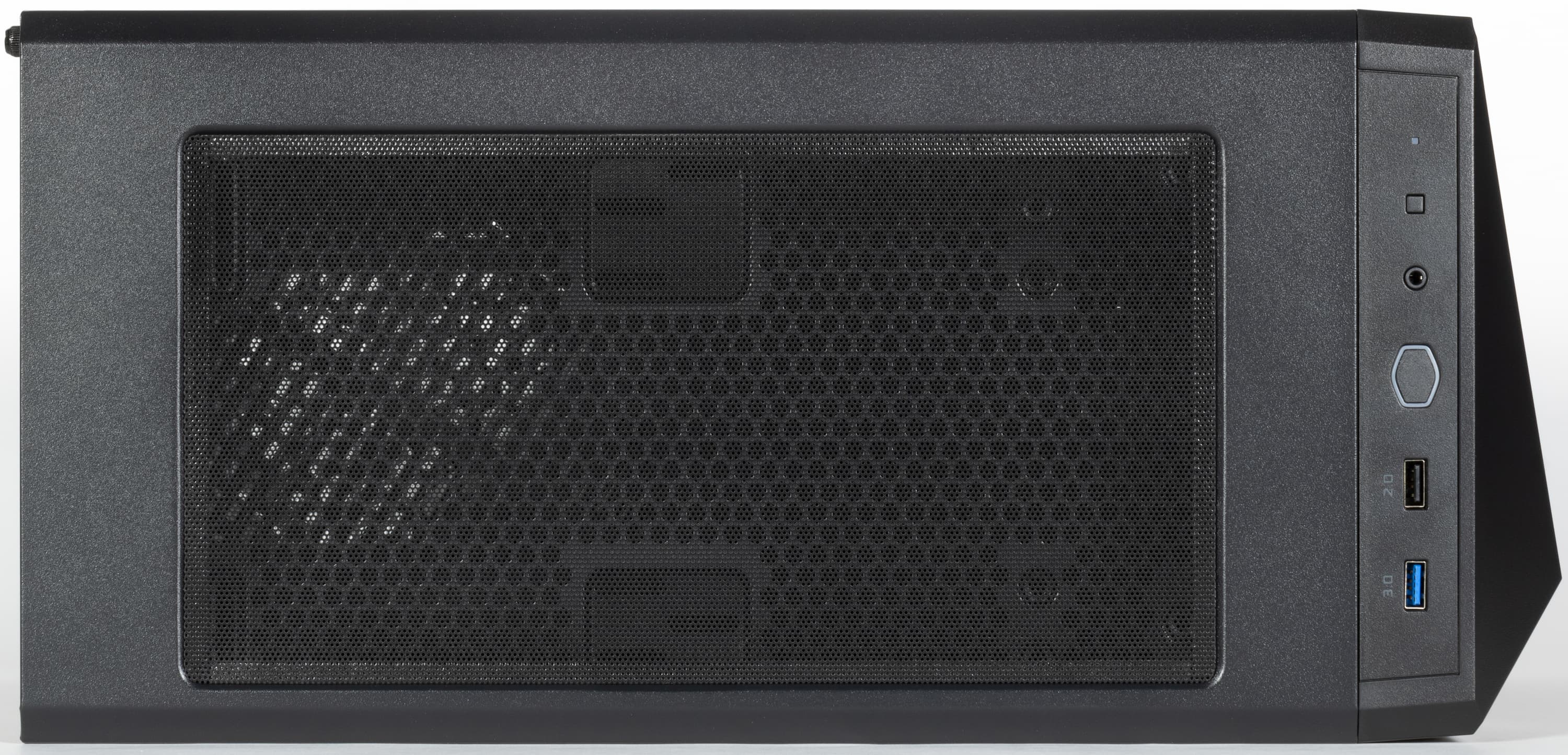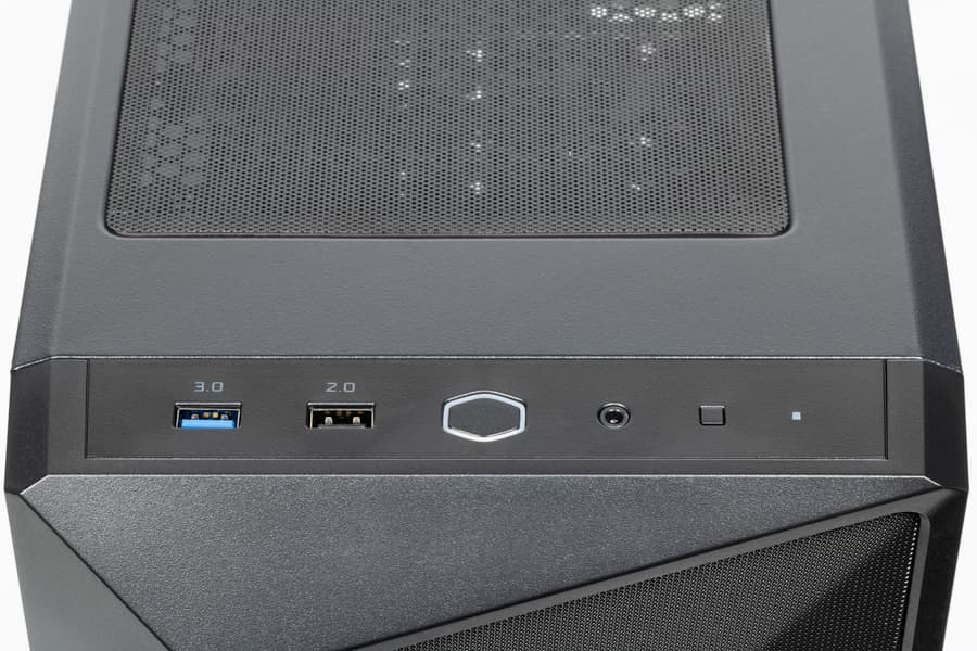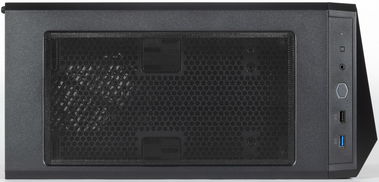 В передней части верхней стенки размещены органы управления и коммутации, в том числе один порт USB 3.0 и один порт USB 2.0, а также два отдельных аудиоразъема (для наушников и микрофона). Разъемов USB все-таки хотелось бы видеть чуть больше, два разъема не всегда достаточно, и уж точно непонятно, что́ мешало сделать хотя бы два разъема USB 3.0.