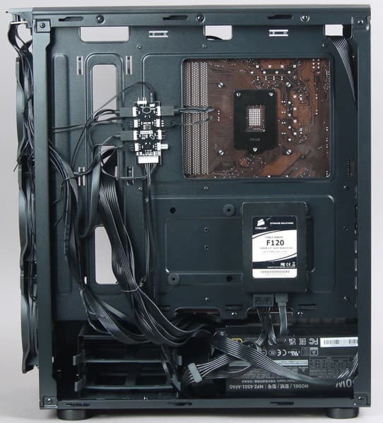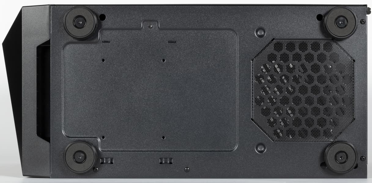 Посадочные места для накопителей с внешним доступом в корпусе полностью отсутствуют. Так что компоновка вполне типовая для современных решений, никаких заметных особенностей нет.