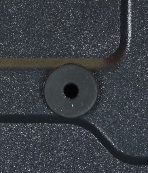 Конструкция крепления достаточно оригинальная: в накопитель вкручиваются винты с цилиндрической головкой, которые вставляются в резиновые втулки, вдетые в монтажные отверстия, то есть фиксация осуществляется только за счет силы трения.
