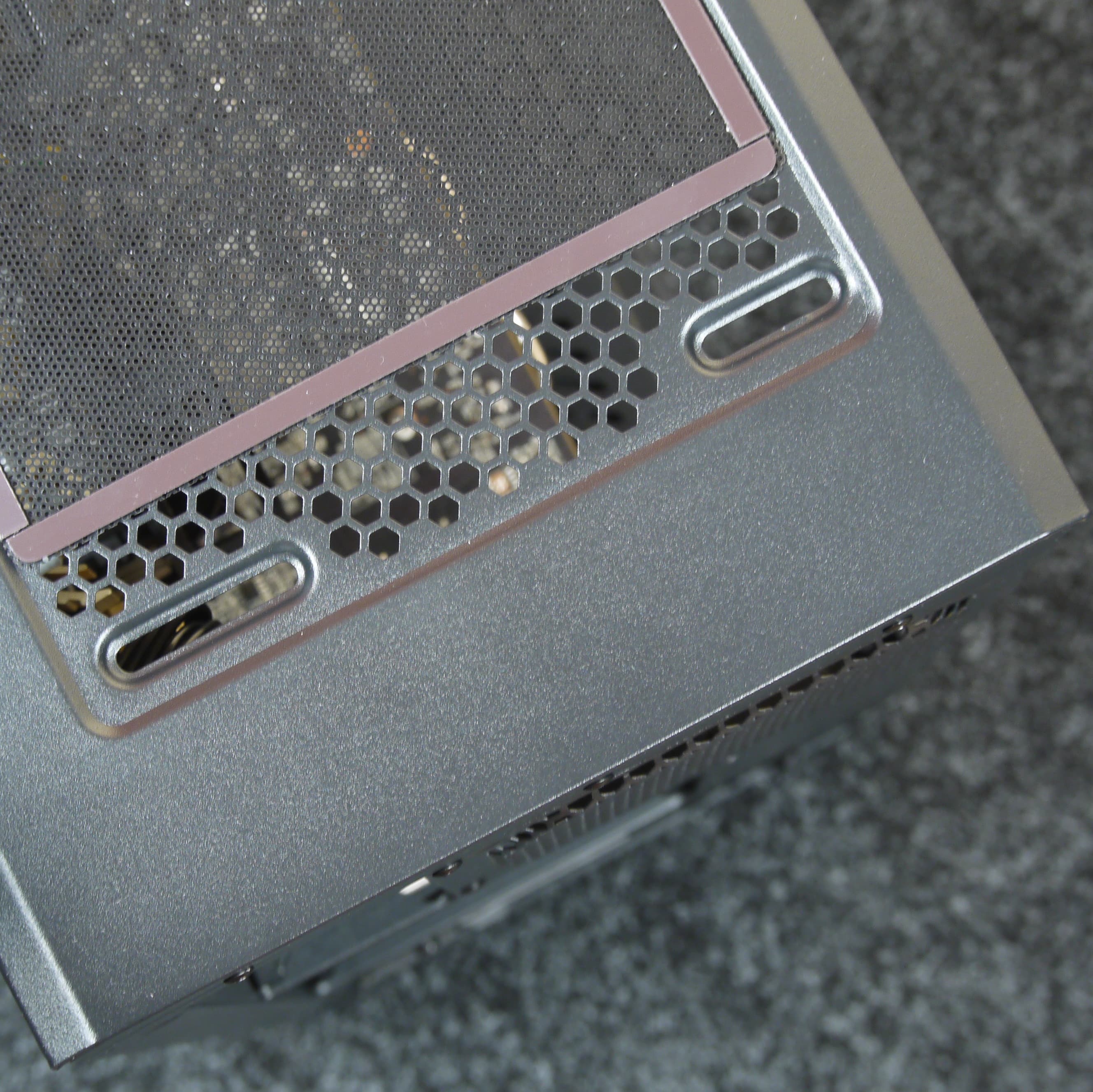 Фильтр для верхней стенки удобнее всего снимается и ставится на место благодаря магнитной окантовке, однако выполнен он из достаточно крупной пластиковой сетки, а потому большая часть мелких пылинок просочится сквозь него в корпус. С другой стороны, он отлично поможет от падения внутрь корпуса монет, ключей, каких-либо мелких предметов, да и от части пыли тоже спасет.