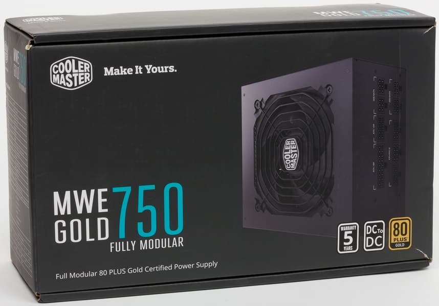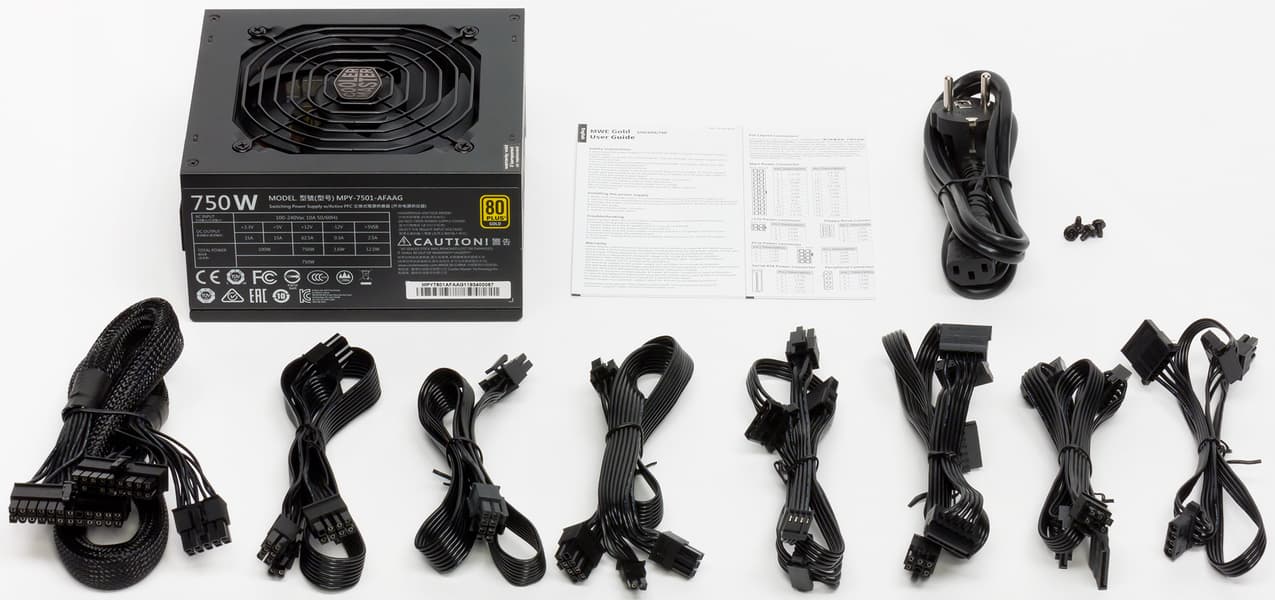 В серии MWE Gold компании Cooler Master представлено шесть моделей БП мощностью 550, 650 и 750 Вт. Объясняется такое количество тем, что в серии представлено по две модели каждого номинала: с фиксированными и полностью отсоединяемыми (модульными) проводами. Все эти источники питания имеют сертификат 80Plus Gold, нам предстоит познакомиться с одним из представителей данной немногочисленной группы — блоком питания Cooler Master MWE Gold 750 Full Modular. В российской рознице на момент подготовки обзора он стоил около 7000 рублей.