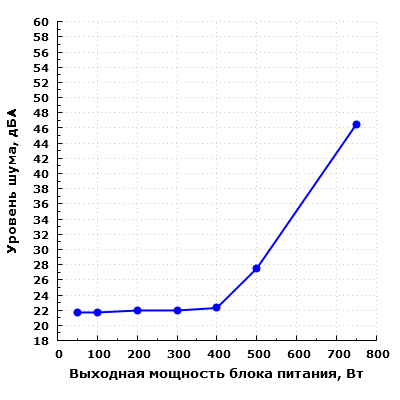 .При работе в диапазоне примерно до 400 Вт включительно шум блока питания находится на минимально заметном уровне — менее 23 дБА с расстояния 0,35 метра.
