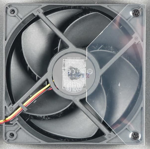 В блоке питания установлен вентилятор типоразмера 120 мм, который основан на подшипнике скольжения с самосмазывающейся втулкой. Подключение трехпроводное (с ШИМ-управлением) через разъем.