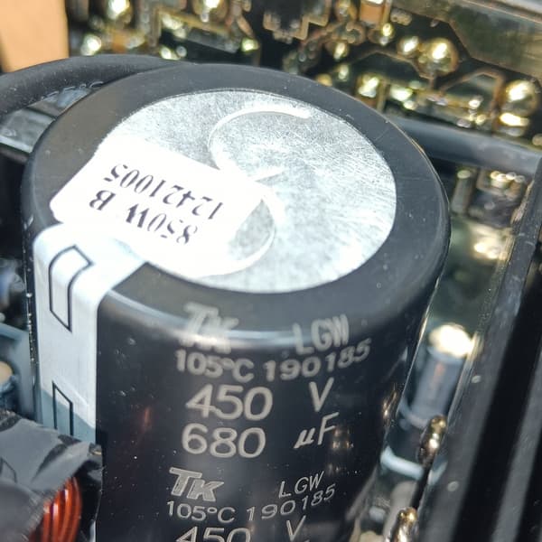 В устройстве установлены конденсаторы с жидким электролитом, имеющие японское происхождение: высоковольтные Toshin Kogyo (TK) и низковольтные Rubycon. Установлено тут и большое количество полимерных конденсаторов.