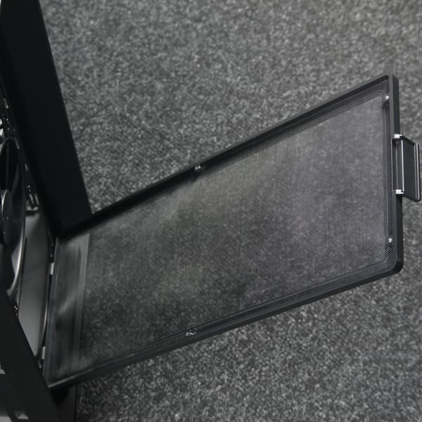 Фильтр для верхней стенки удобнее всего снимается и ставится на место благодаря магнитной окантовке, однако выполнен он из достаточно крупной пластиковой сетки, а потому бо́льшая часть мелких пылинок просочится сквозь него в корпус. С другой стороны, он отлично поможет от падения внутрь корпуса монет, ключей, каких-либо мелких предметов, да и от части пыли тоже спасет.