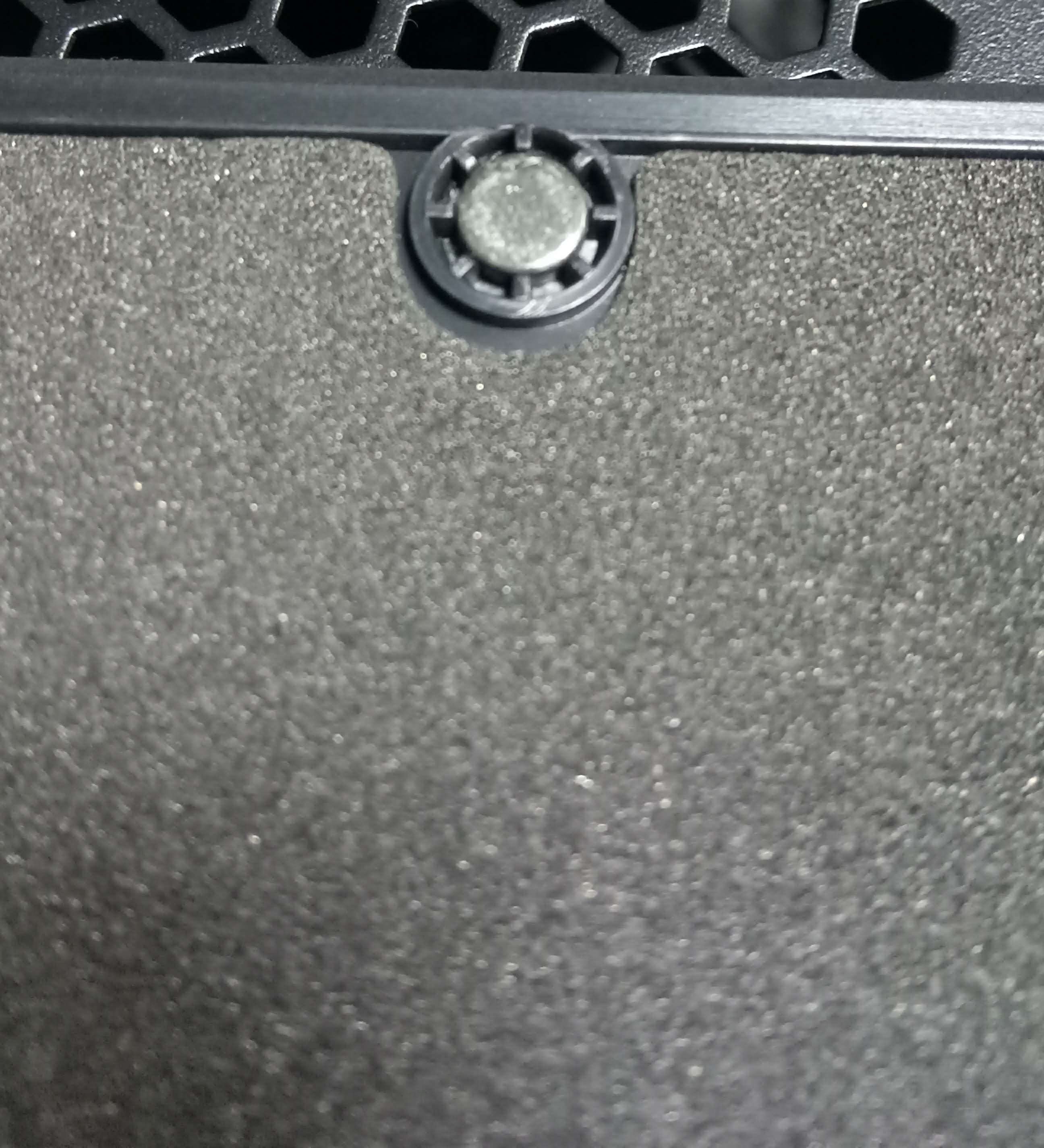 По умолчанию верхнее вентиляционное отверстие закрыто съемной пластмассовой крышкой, которая с внутренней стороны оклеена поролоном. Тут используется магнитное крепление при помощи нескольких небольших магнитов, приклеенных непосредственно к пластику крышки.