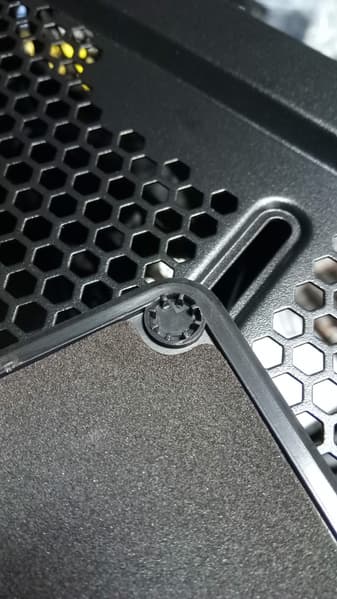 Фильтр на нижней стенке шасси выполнен из мелкой синтетической сетки, которая заключена в пластиковую рамку. Его можно считать быстросъемным, так как для его извлечения не требуется каких-либо дополнительных действий. Аналогичный по конструкции фильтр (но с магнитным креплением) установлен и спереди, однако для его очистки нужно снимать переднюю панель.