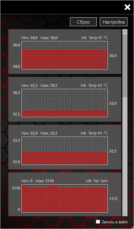 Набор графиков можно вывести в отдельном окне и вести запись в файл.