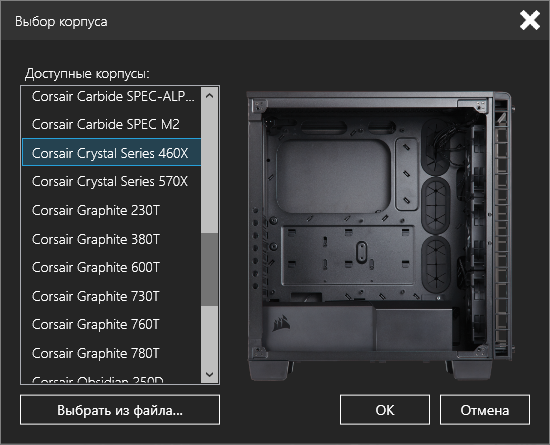 Даже модель для отображения можно выбирать из длинного списка, вот только наш «герой» Crystal Series 680X в нем пока отсутствует.
