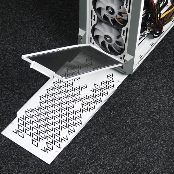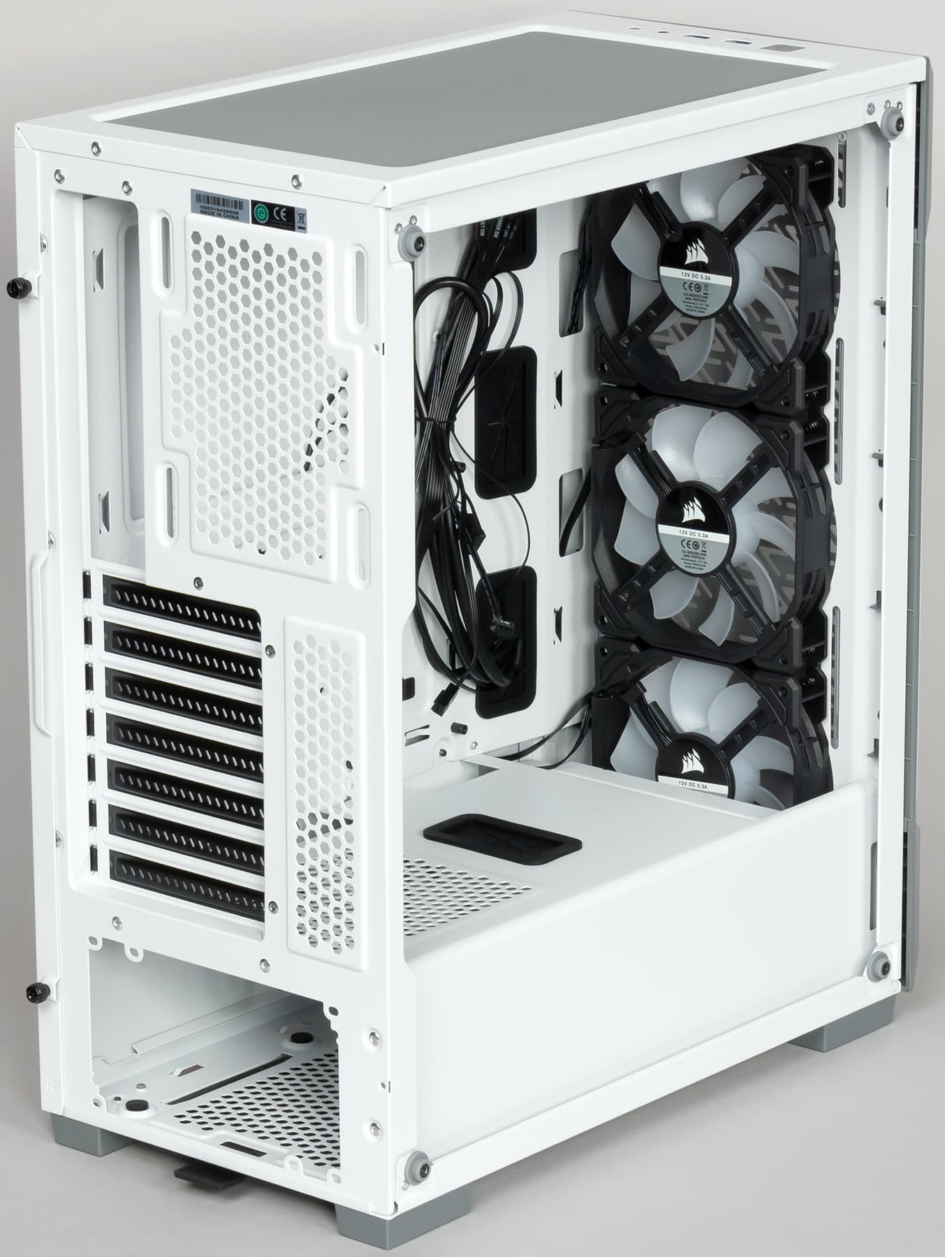 Все остальное тут в современном тренде: спереди — решетка, сбоку — стекло. Разноцветная иллюминация также имеется — и более того, наличие системы iCue является одной из ключевых особенностей данного корпуса.