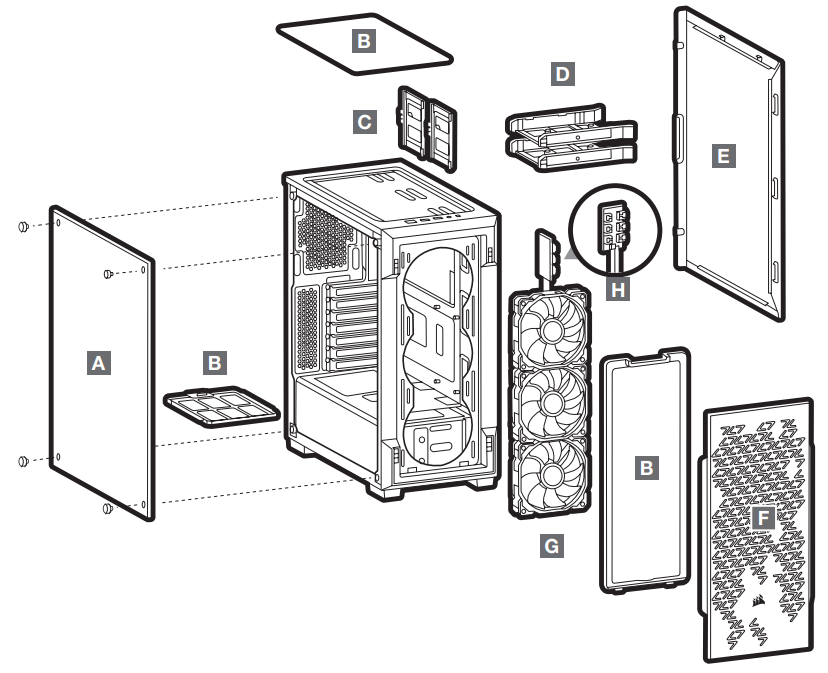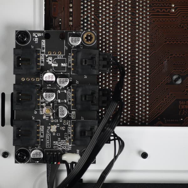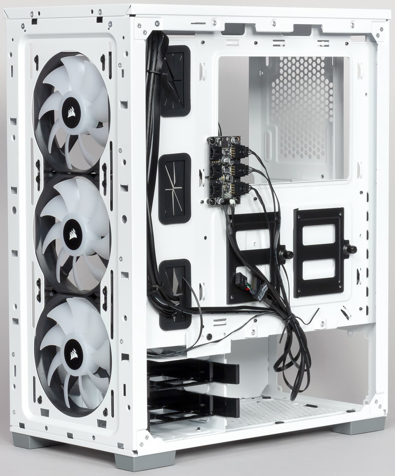 В корпусе предустановлены три вентилятора типоразмера 120 мм, все — спереди. Вентиляторы имеют по два разъема: стандартные трехконтактные разъемы с колодкой 1×3 с возможностью подключения к системной плате с управлением питающим напряжением и проприетарные четырехконтактные разъемы для управления подсветкой.