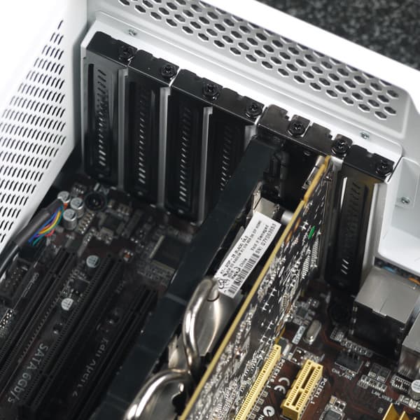 Система фиксации карточек самая обычная — крепление на винтах изнутри корпуса с индивидуальной фиксацией. Все заглушки для плат расширения съемные, фиксируются одним винтом под крестовую отвертку.