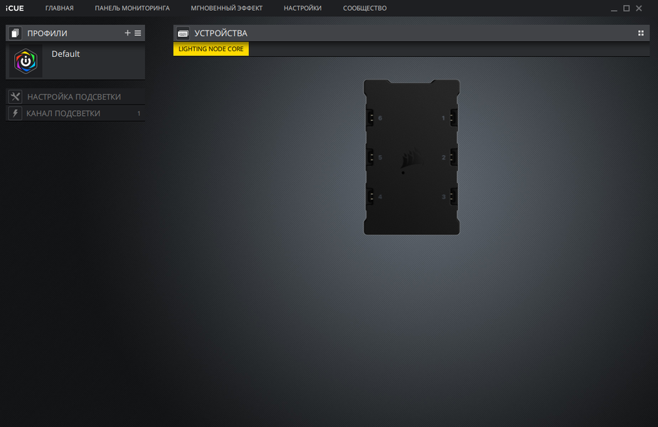 Существует несколько вариантов контроллеров iCue, в данном случае используется самый простой — iCue Lighting Node Core. Это однокорпусное решение с шестью разъемами для источников света Corsair, под которыми подразумеваются прежде всего вентиляторы с подсветкой.